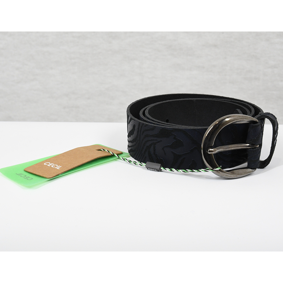 Ceinture 100% cuir. Impression noire façon zèbre sur fond marine. 80 = tour de taille et/ou de hanche. Marque Cecil