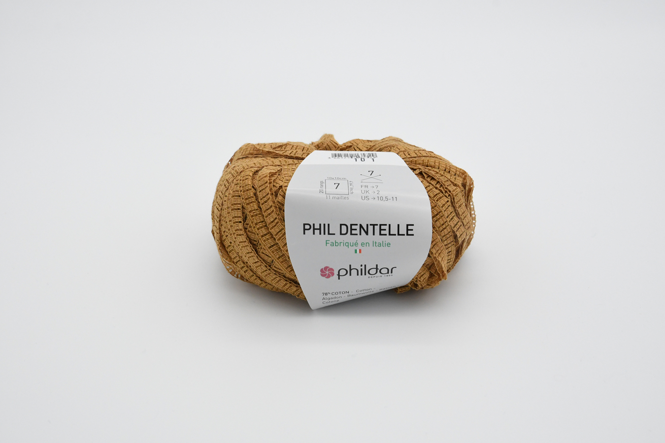 Pelote de 50g (+/- 150m).Fil ruban à l’aspect dentelle. Fabriqué en Italie.