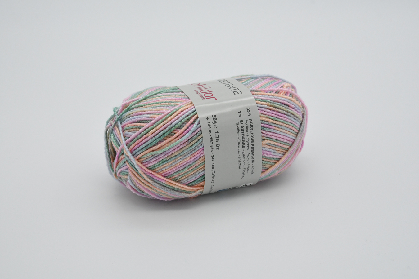 Pelote de 50g (+/- 144m). Fil fin et doux avec une touche d’élasthanne pour plus de confort.