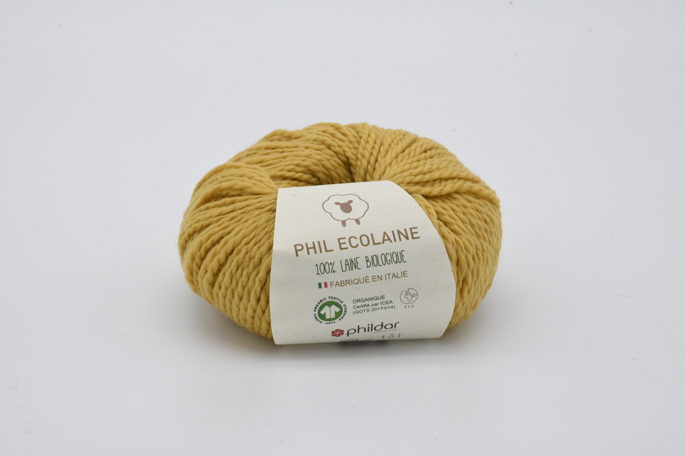 Pelote de 50g (+/-125m). Fil éco-responsable. Ce fil doux et gonflant est labellisé GOTS. Fabriqué en Italie