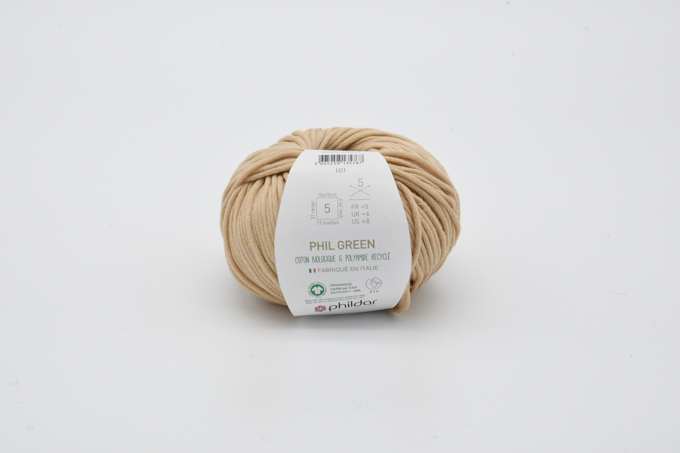 Pelote de 50g (+/-125m). Fil encagé composé à 100% de matières écologiques. Certification GOTS qui atteste que le coton est issu de l’agriculture biologique. Fabriqué en Italie
