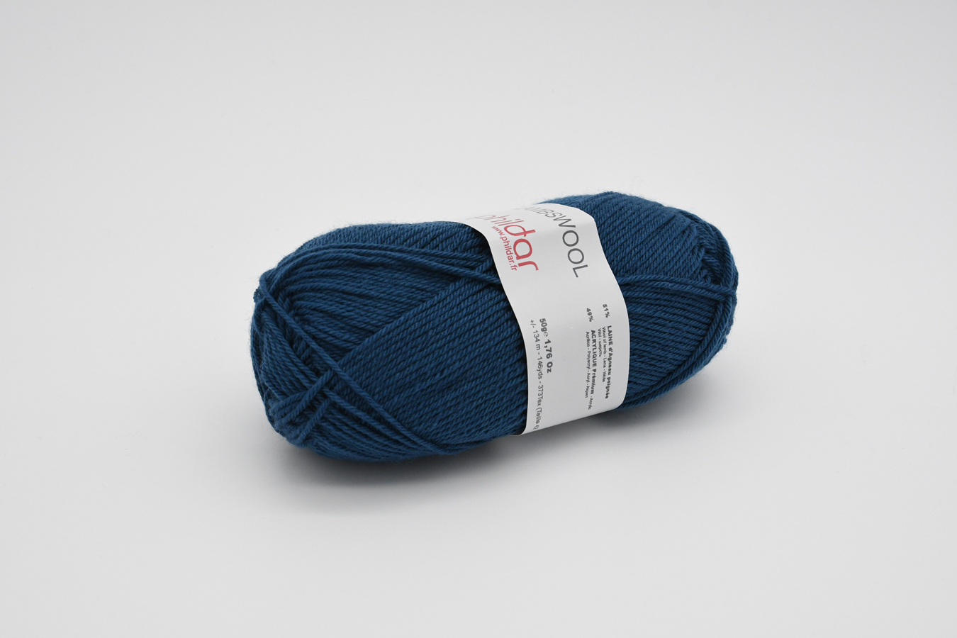 Pelote de 50g (+/- 134m). Fil doux.
