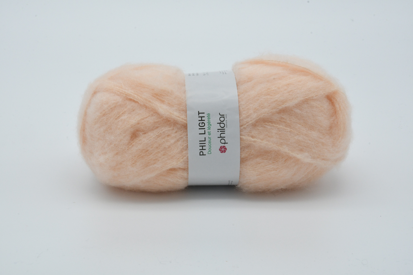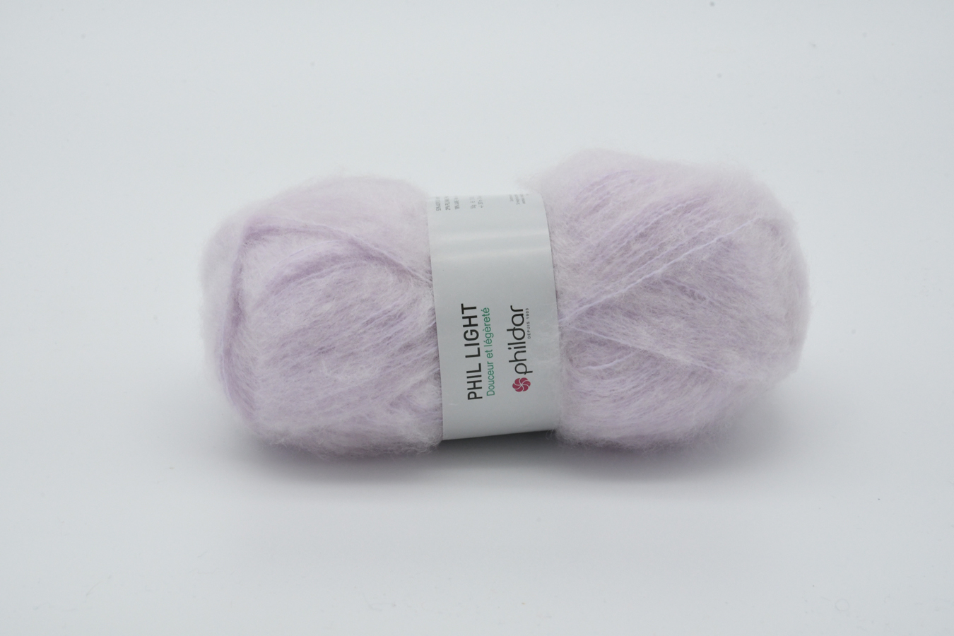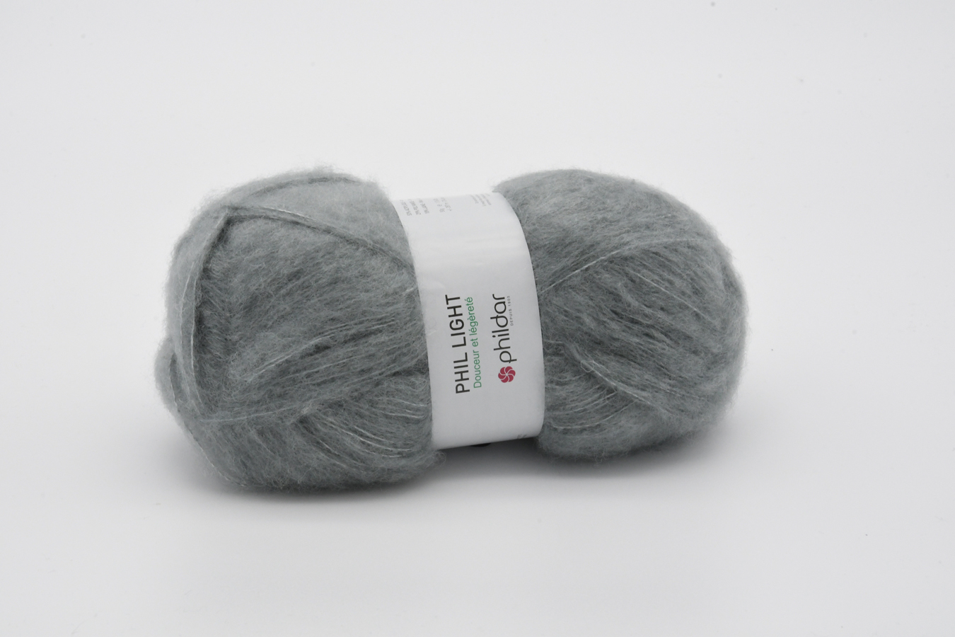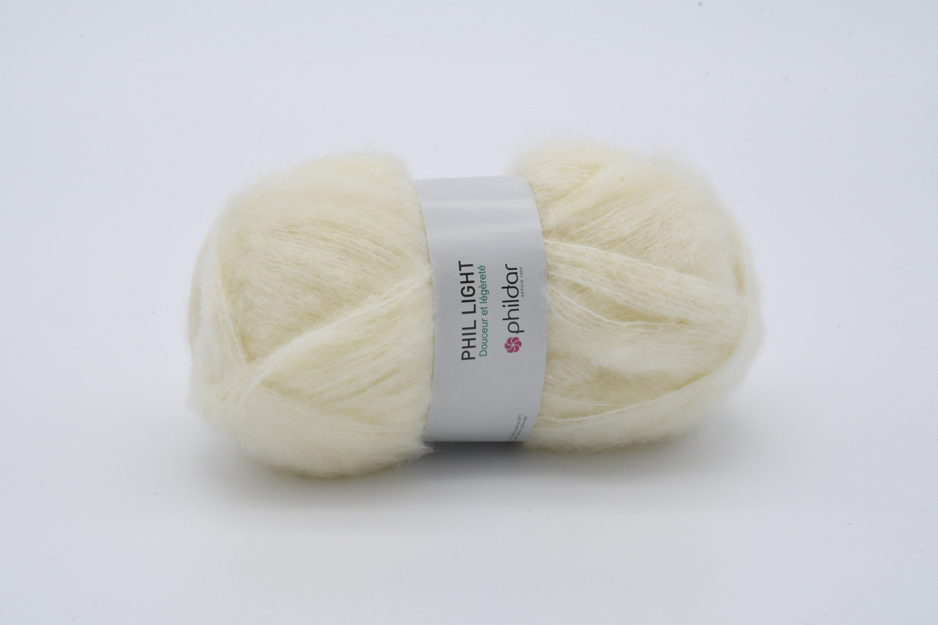 Pelote de 50g (+/-287m). C’est un fil léger, poilu et vaporeux, avec un aspect mohair. A tricoter en simple, en double ou triple ou avec un autre fil.