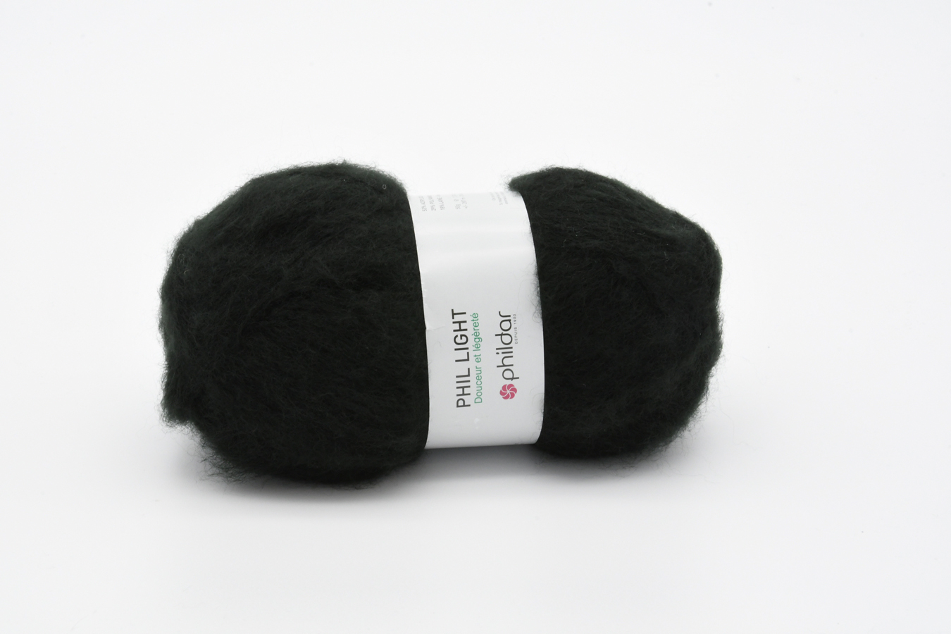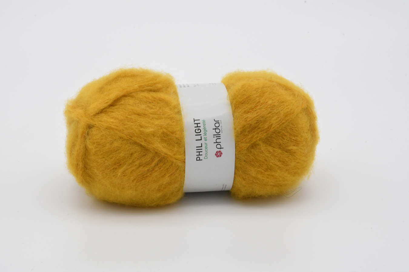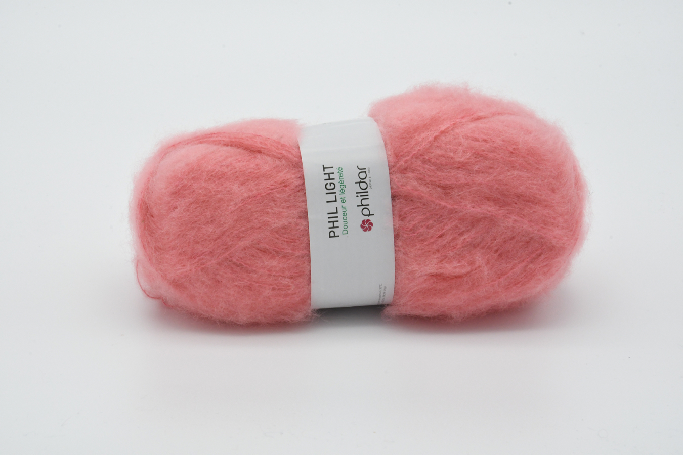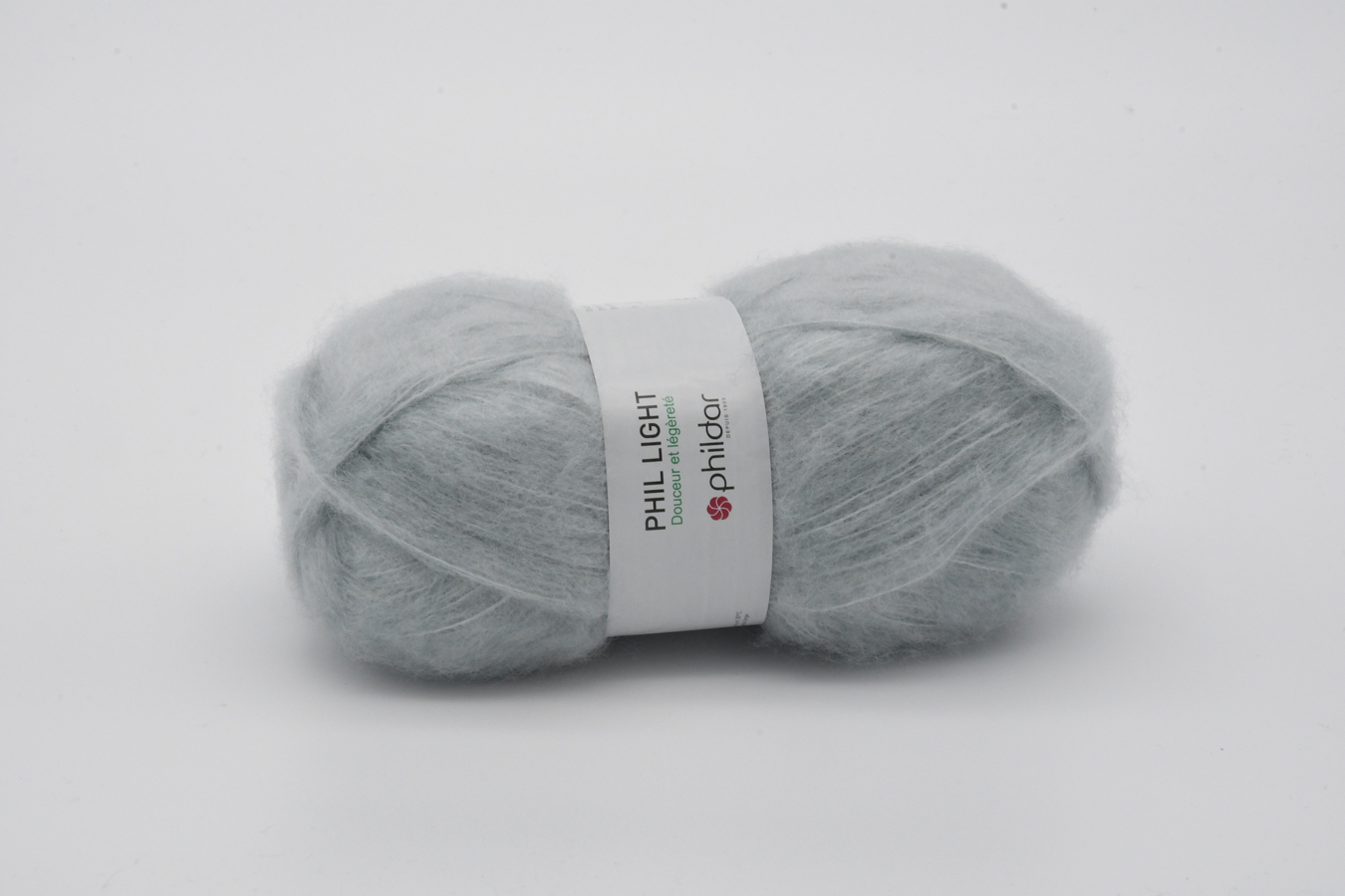 Pelote de 50g (+/-287m). C’est un fil léger, poilu et vaporeux, avec un aspect mohair. A tricoter en simple, en double ou triple ou avec un autre fil.