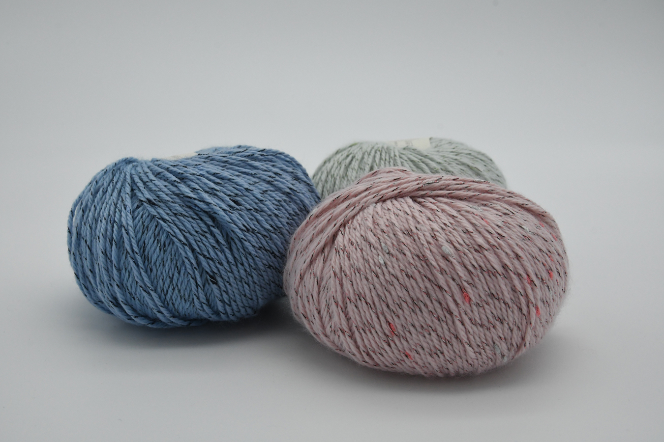 Pelote de 50g (+/- 150m). Fil d’une grande douceur à l’aspect tweed. Idéal pour la layette. Fabriqué en Italie