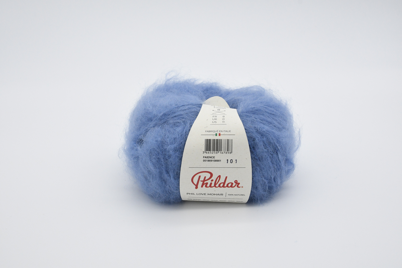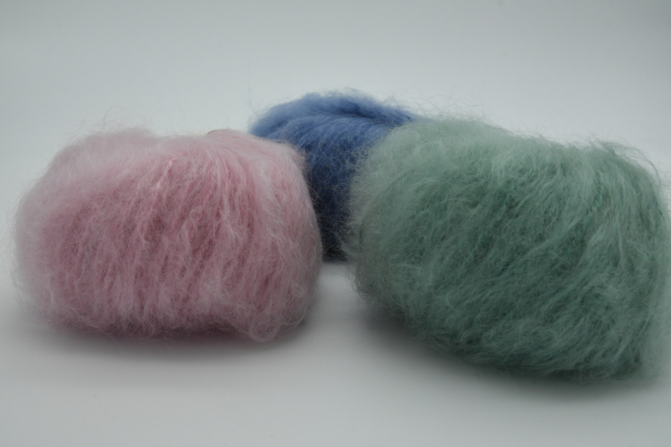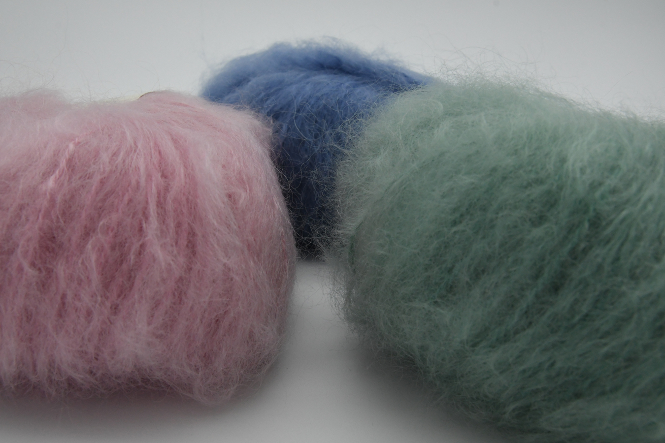 Pelote de 50g (+/- 65m). Fil poilu 100% naturel, composé de laine mohair d’une extrême douceur. Idéal pour tricoter rapidement des modèles de qualité. Fabriqué en Italie