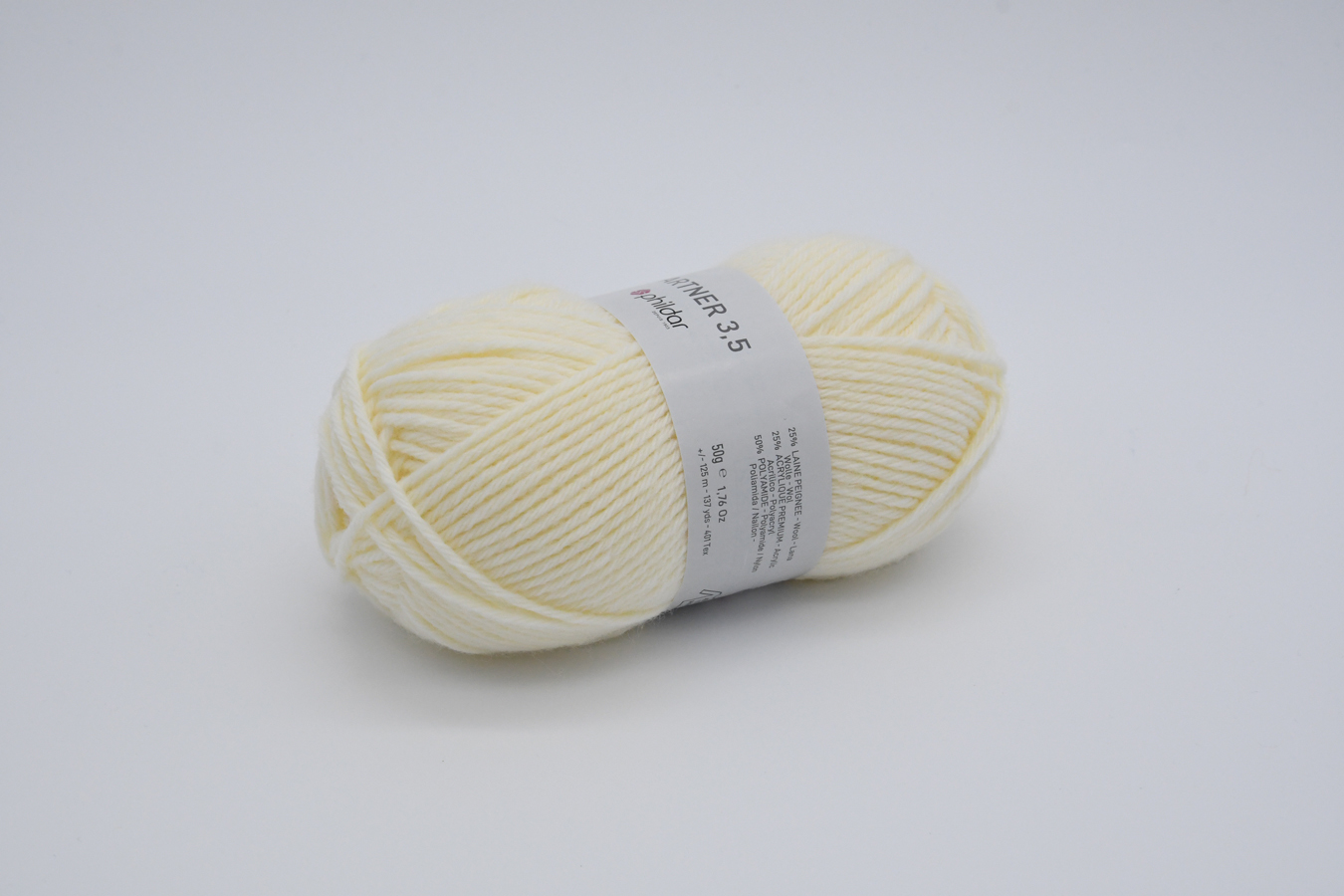Pelote de 50g (+/- 125m). Fil classique doux (dû au polyamide) et délicat. Large choix de couleurs. Idéal pour toute la famille.