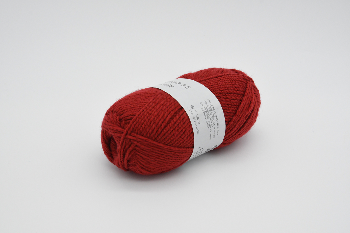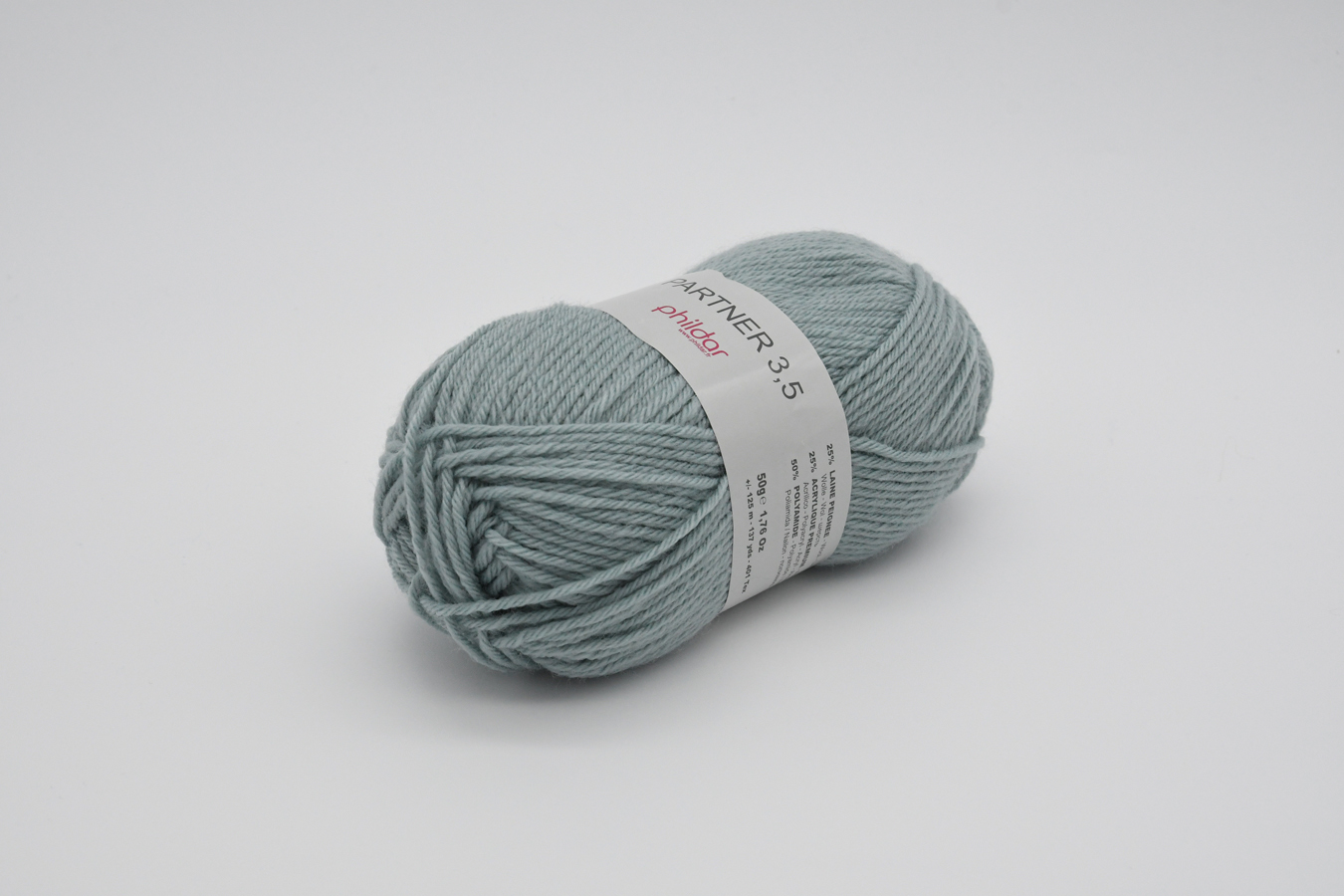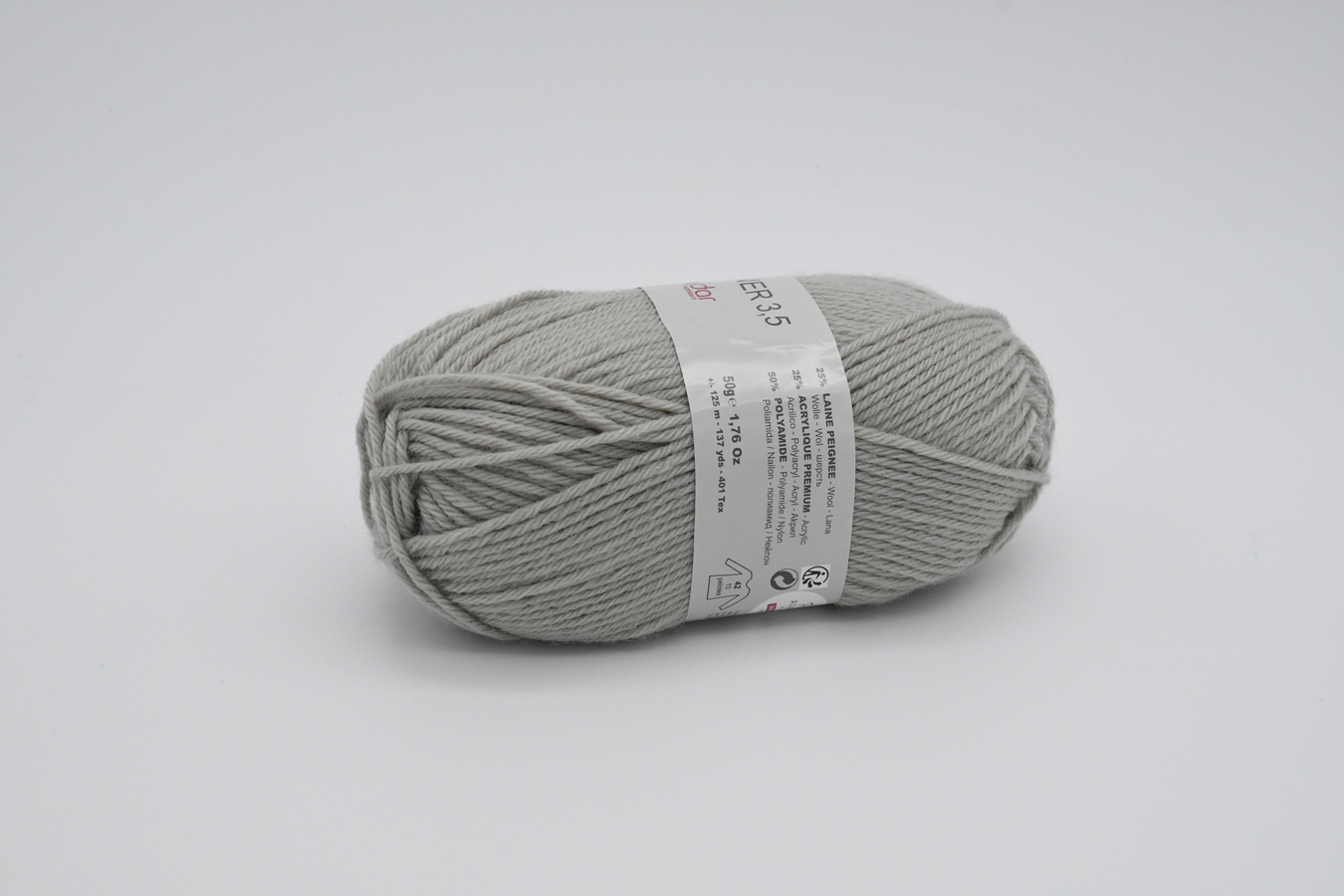 50% Polyamide – 25% Acrylique – 25% Laine Peignée. Aig. 3,5 (éch. 23m/30rgs)