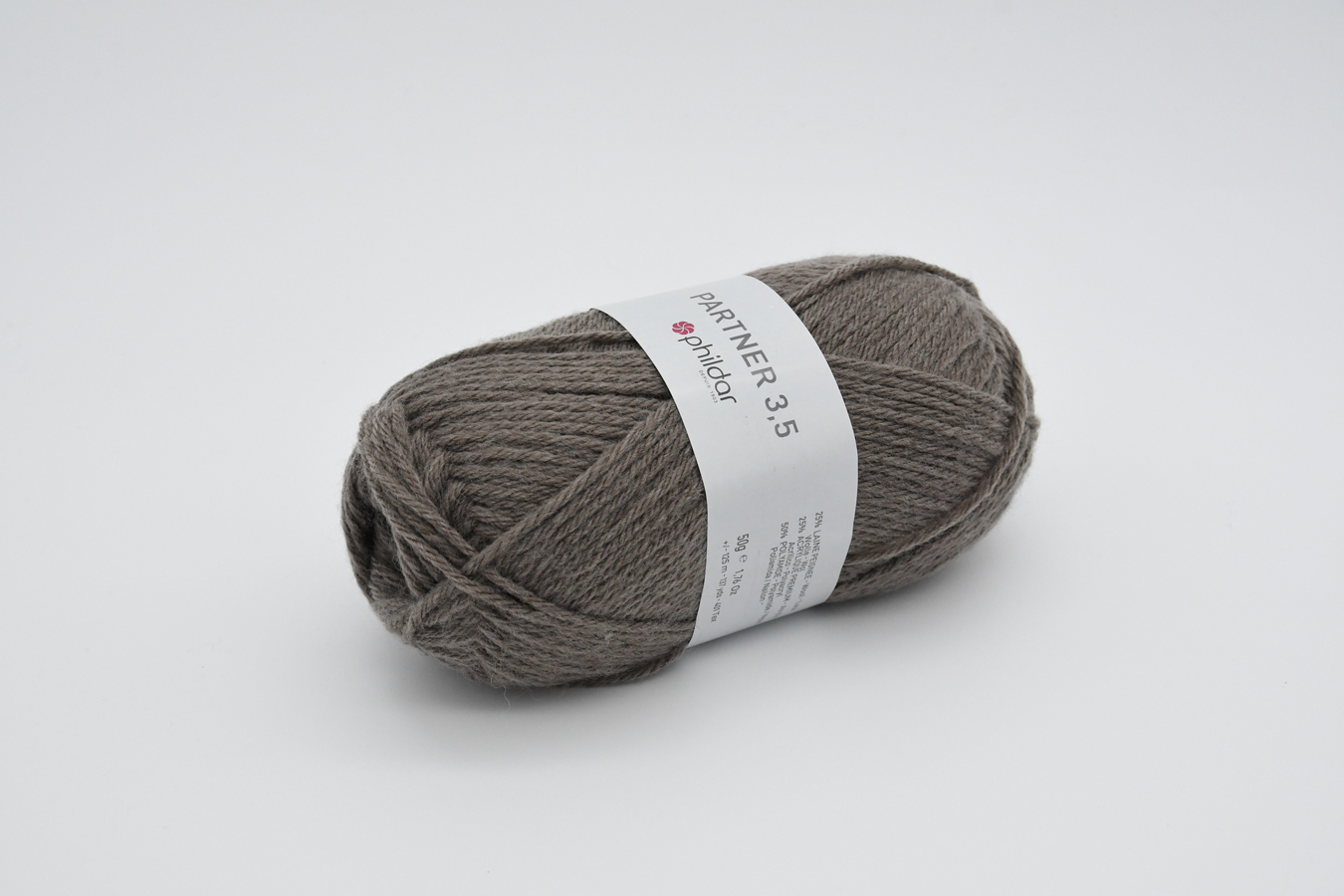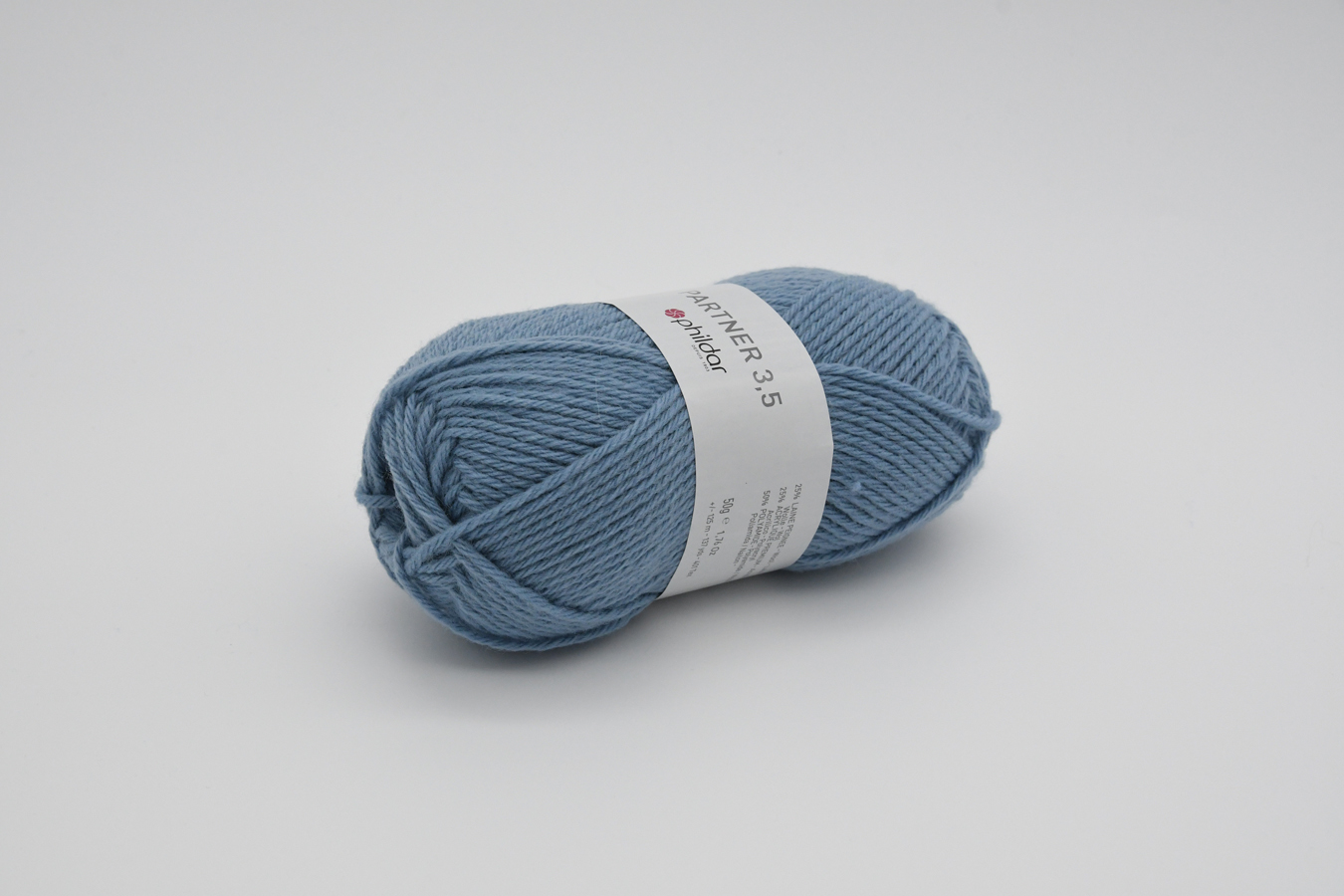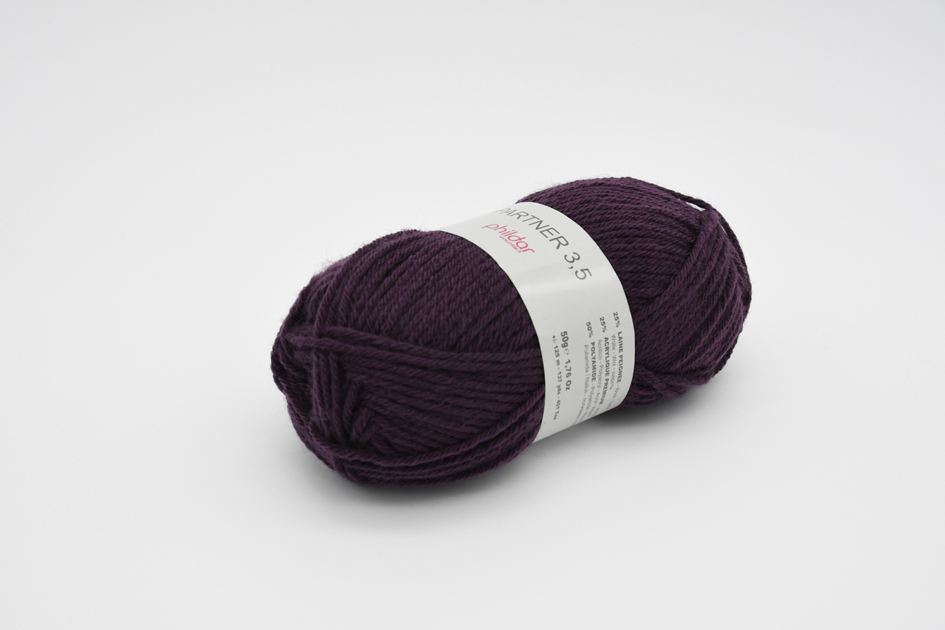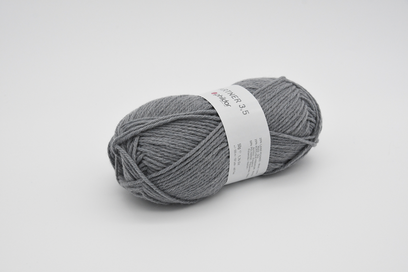 50% Polyamide – 25% Acrylique – 25% Laine Peignée. Aig. 3,5 (éch. 23m/30rgs)