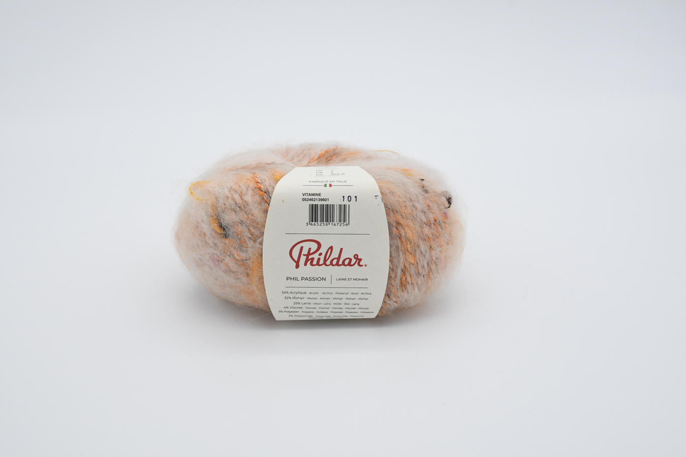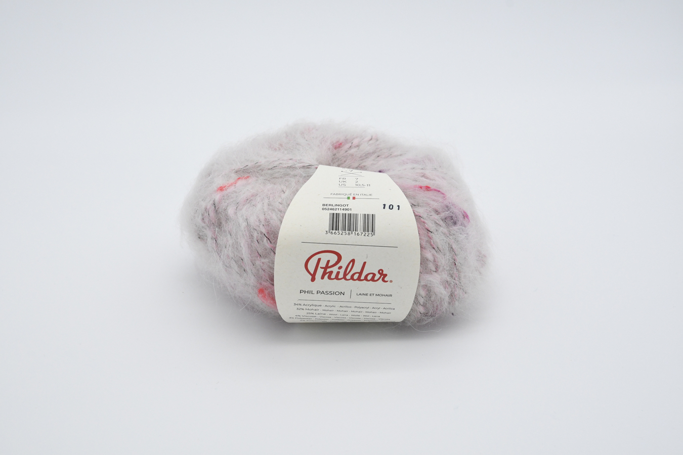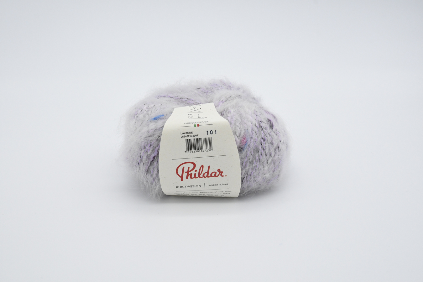 Pelote de 50g (+/- 90m). Fil tweed original, poilu et vaporeux aux touches multicolores. Fabriqué en Italie