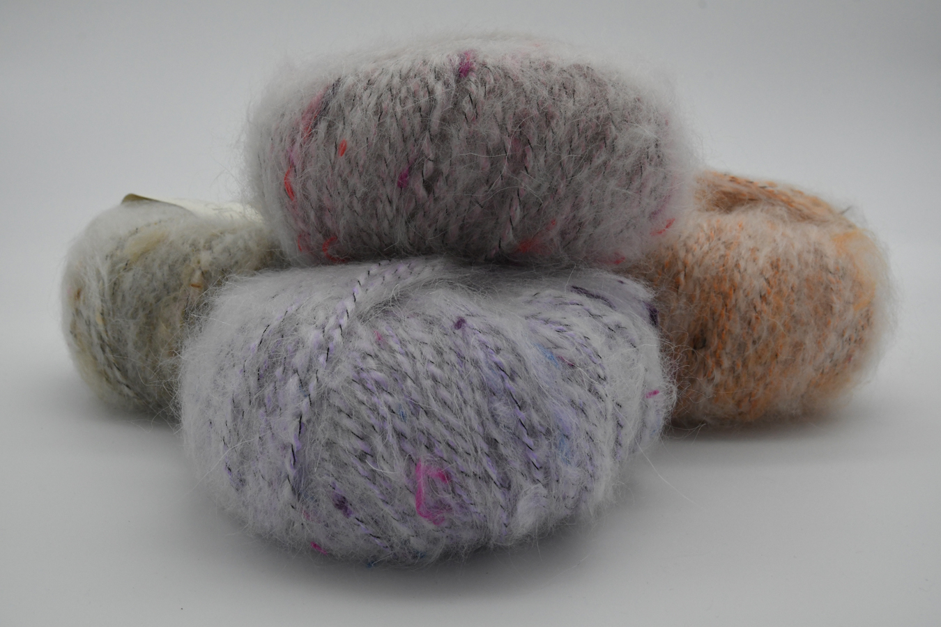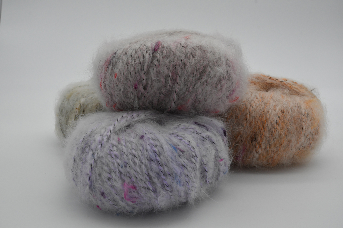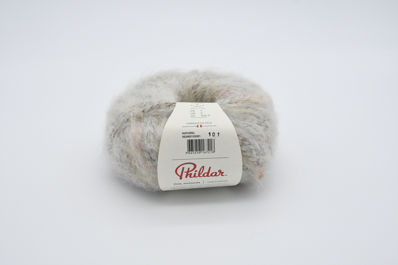Pelote de 50g (+/- 90m). Fil tweed original, poilu et vaporeux aux touches multicolores. Fabriqué en Italie
