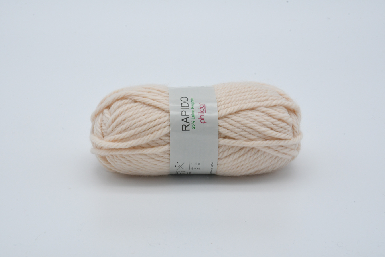 50% Polyamide – 25% Acrylique – 25% Laine peignée. Aig. 7 (éch. 11m/16rgs)