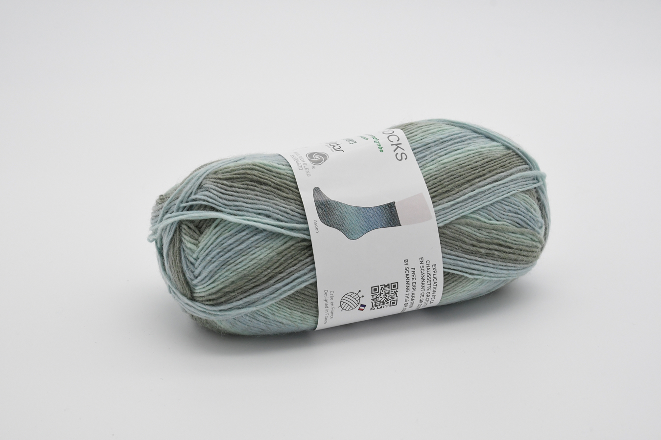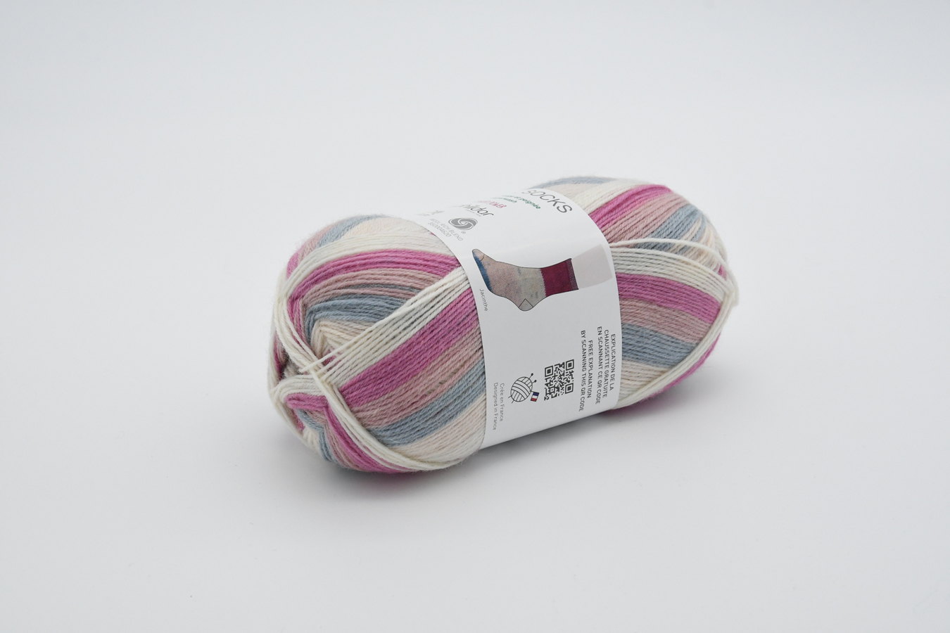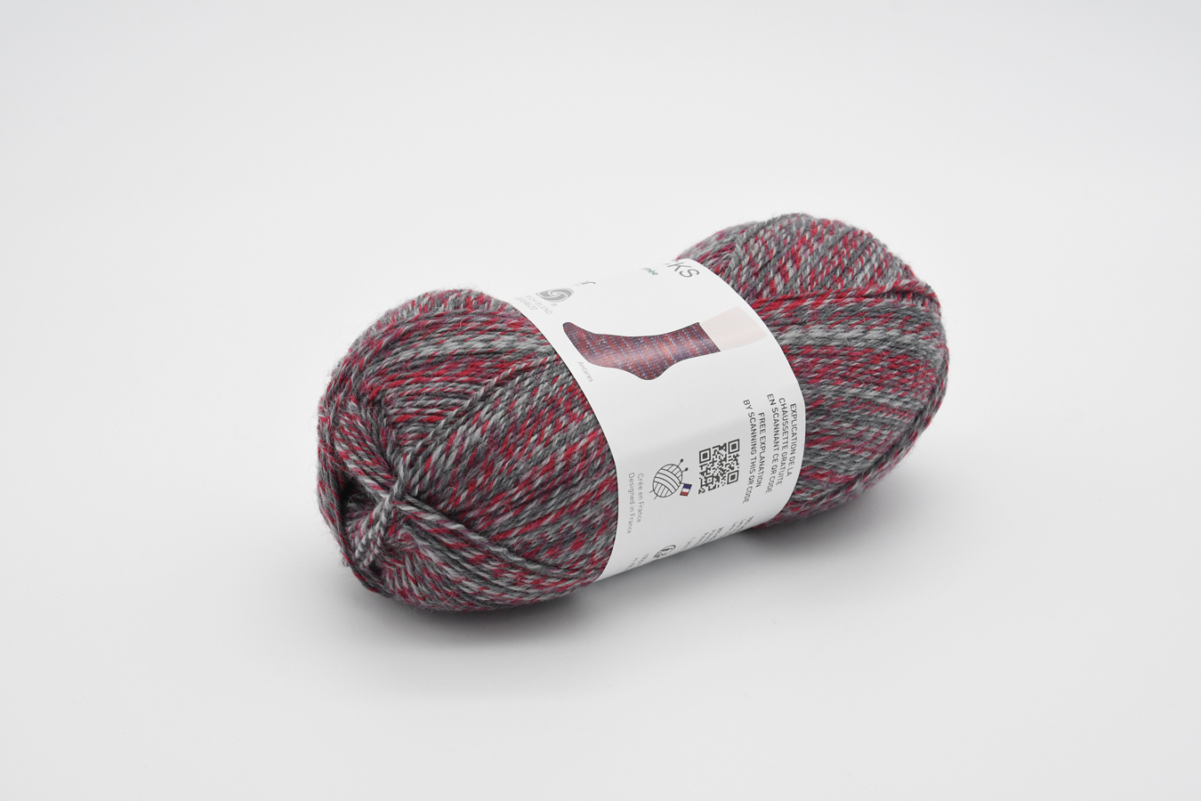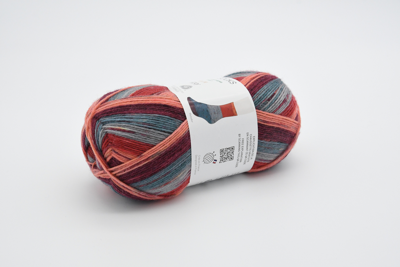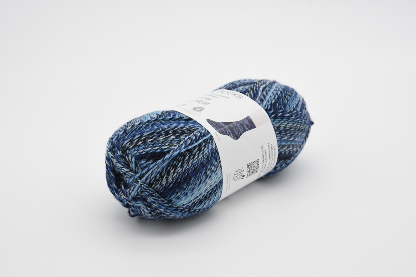Pelote de 100g (+/- 420m). Fil idéal pour tricoter les chaussettes. Laine vierge majoritaire. 1 pelote = 1 paire de chaussettes