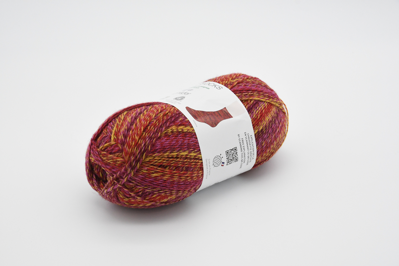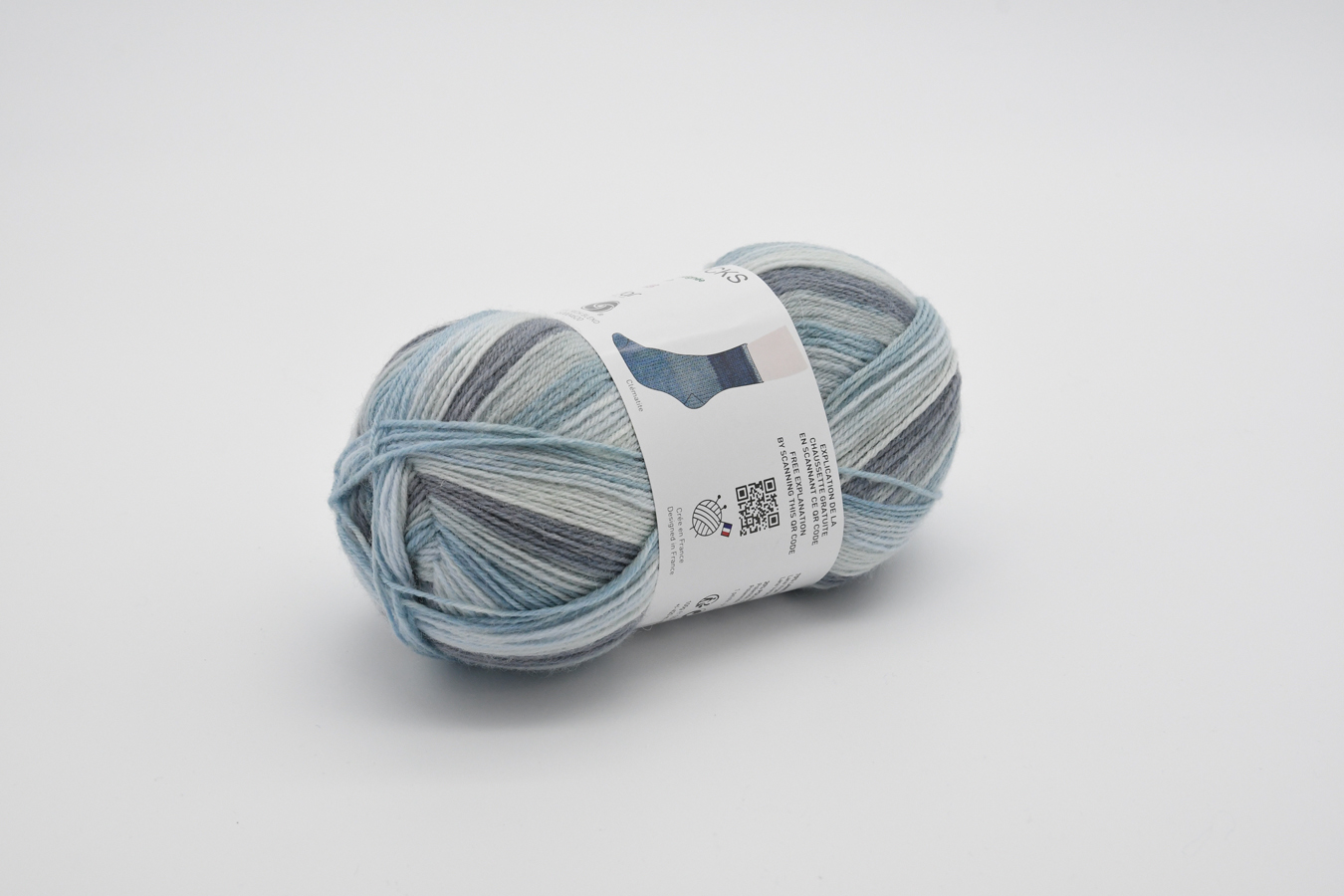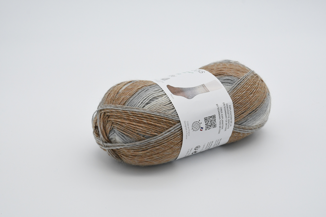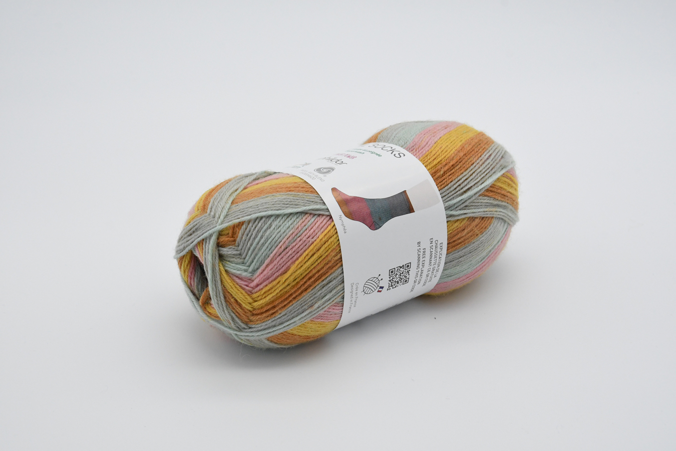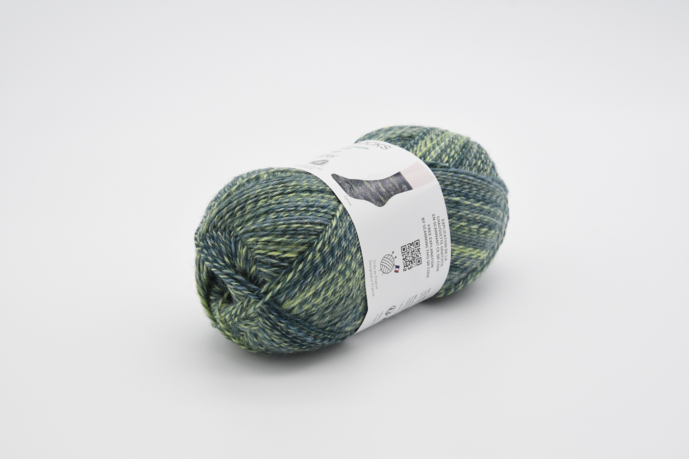 Pelote de 100g (+/- 420m). Fil idéal pour tricoter les chaussettes. Laine vierge majoritaire. 1 pelote = 1 paire de chaussettes