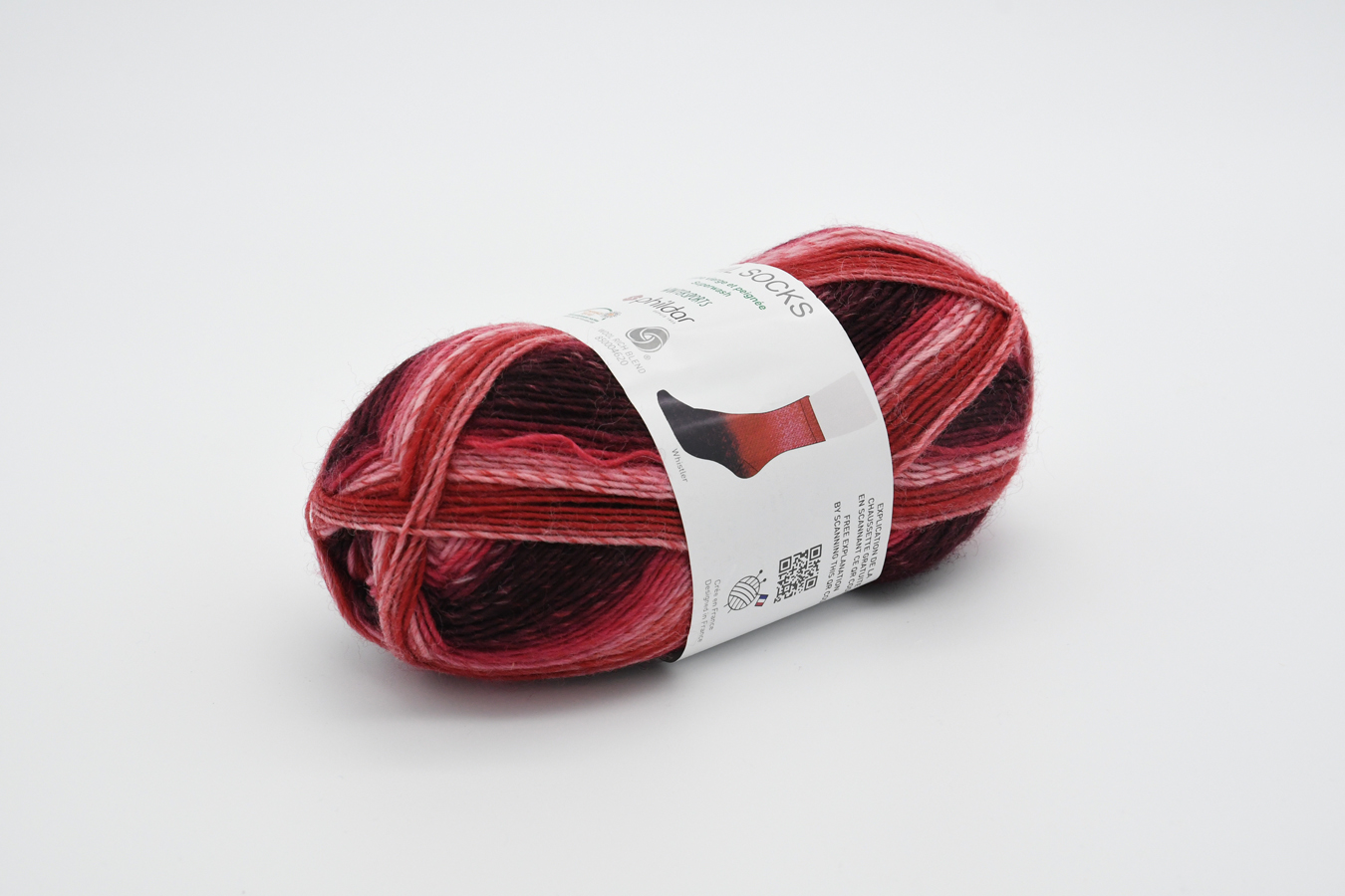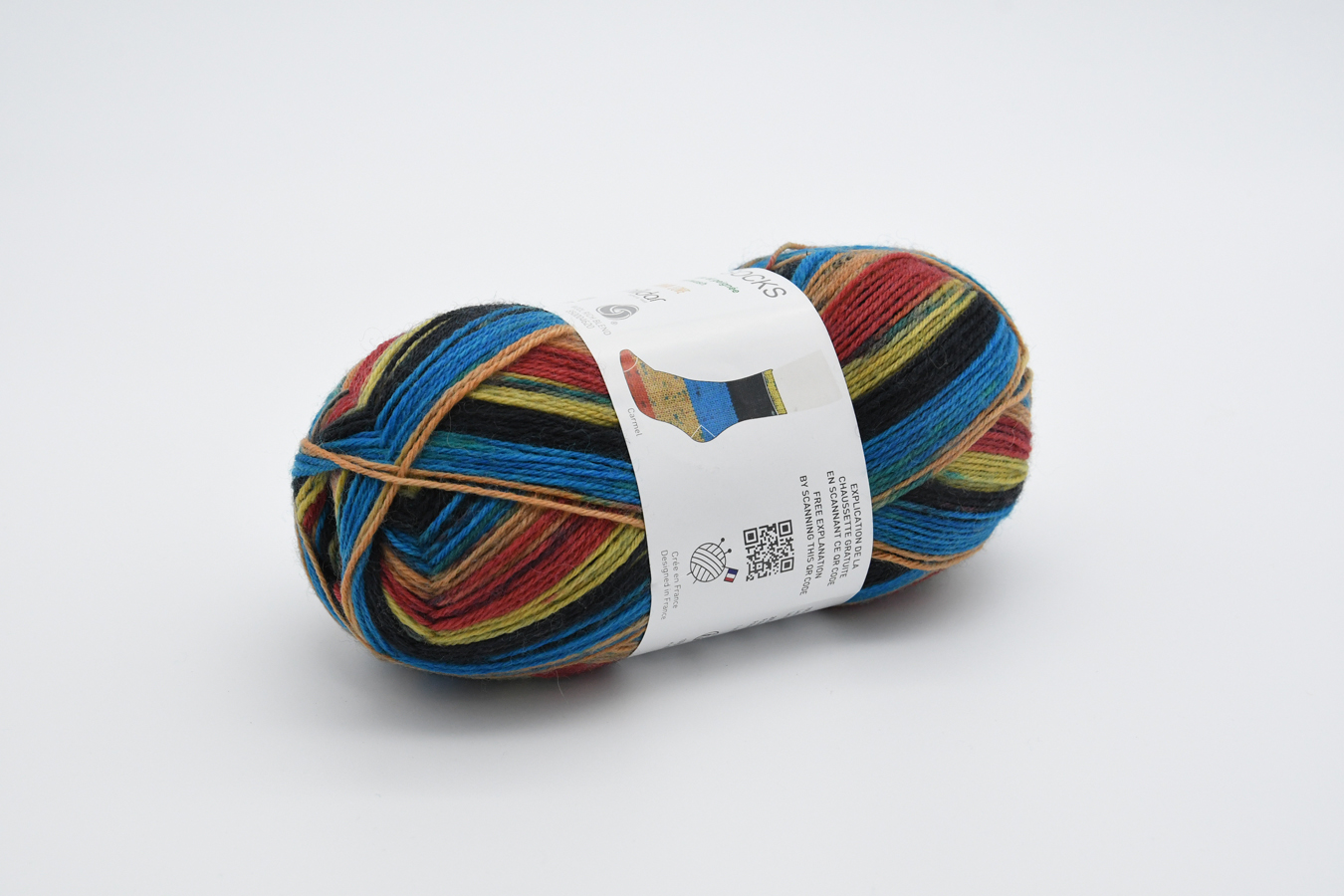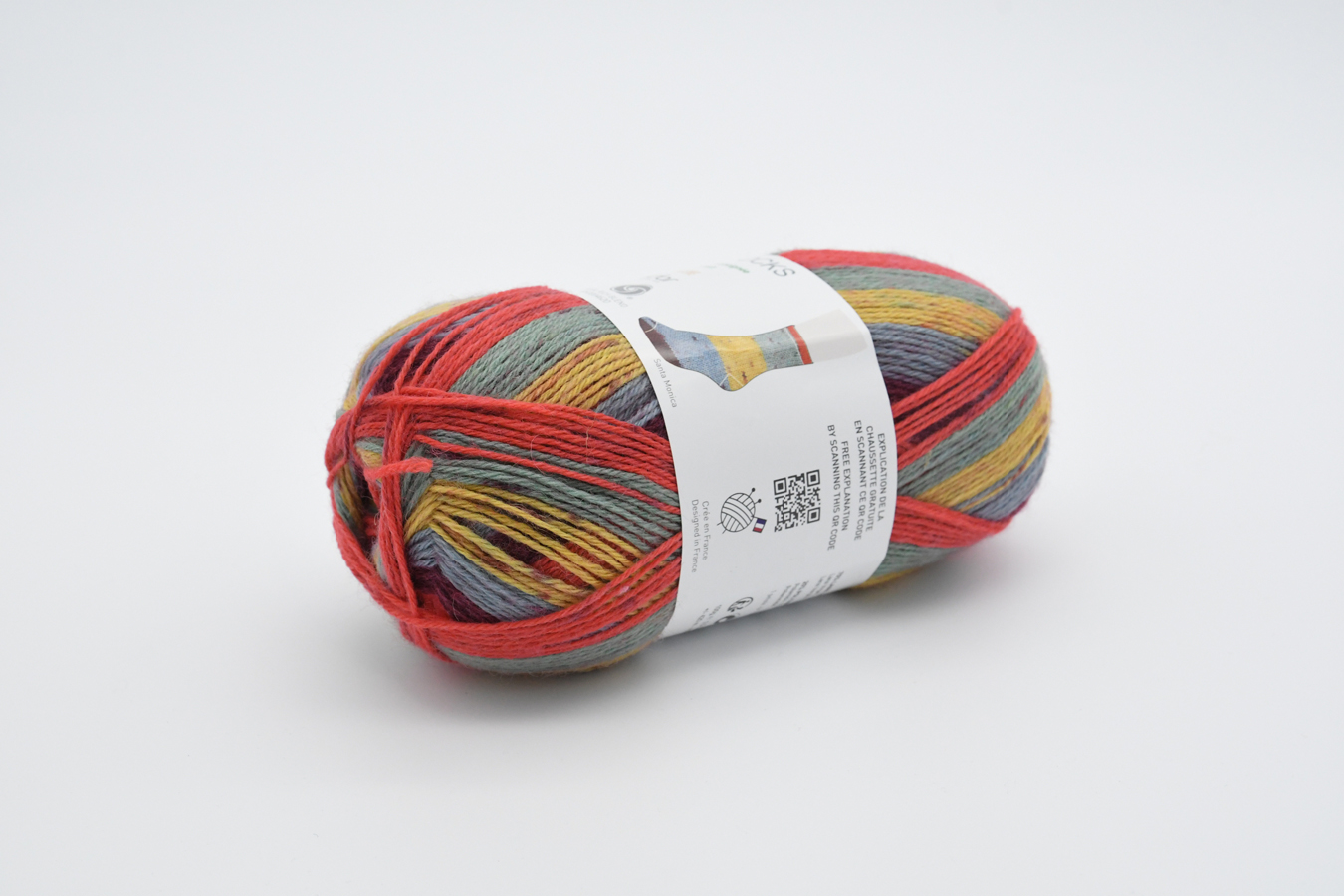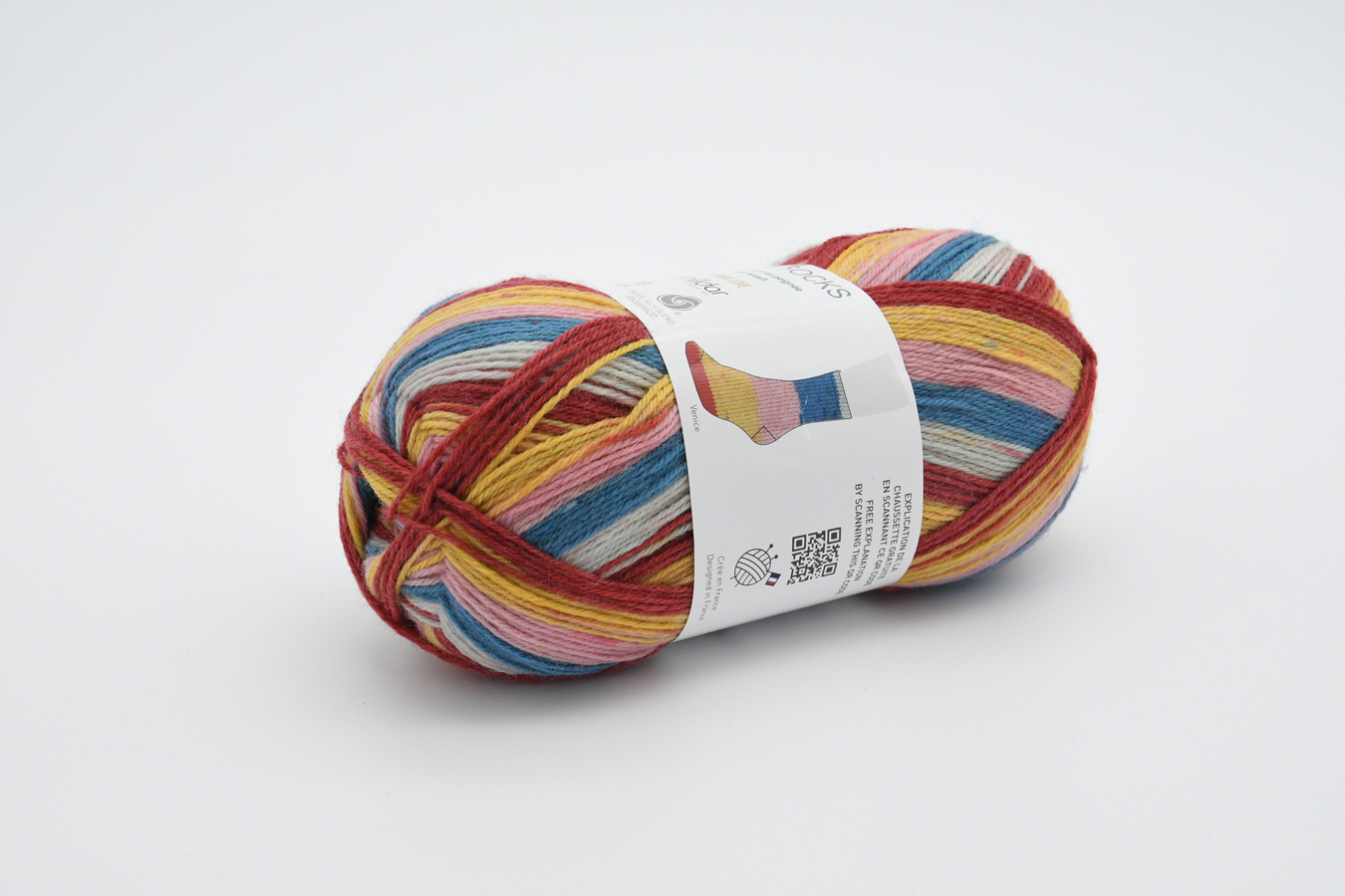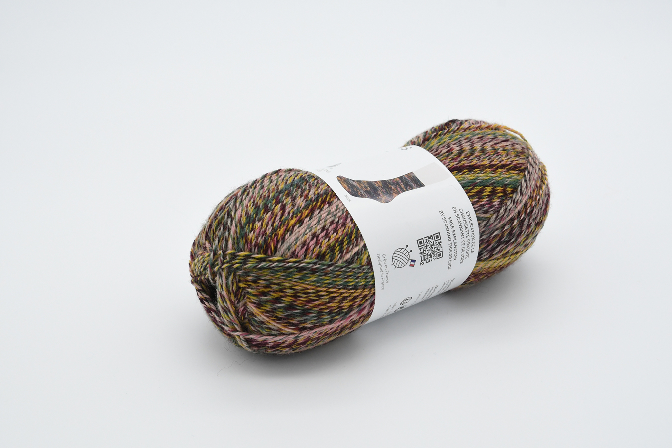 Pelote de 100g (+/- 420m). Fil idéal pour tricoter les chaussettes. Laine vierge majoritaire. 1 pelote = 1 paire de chaussettes
