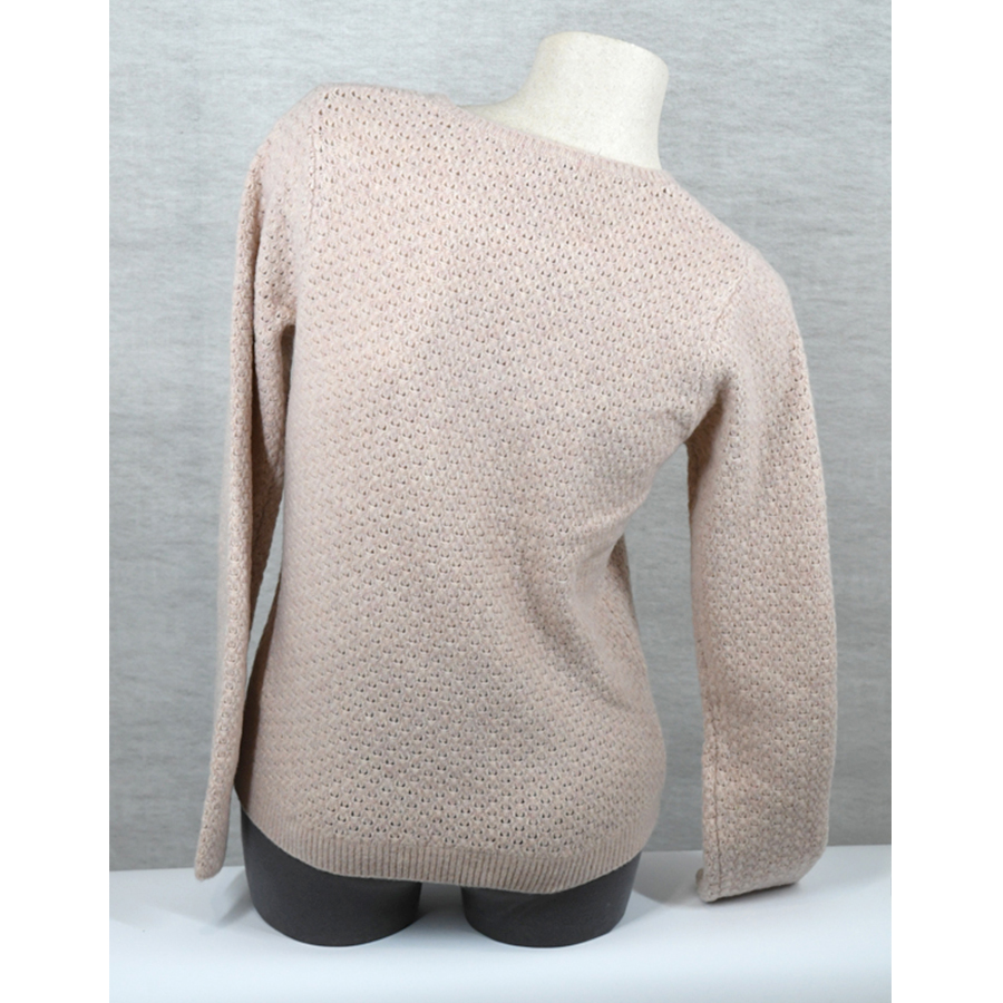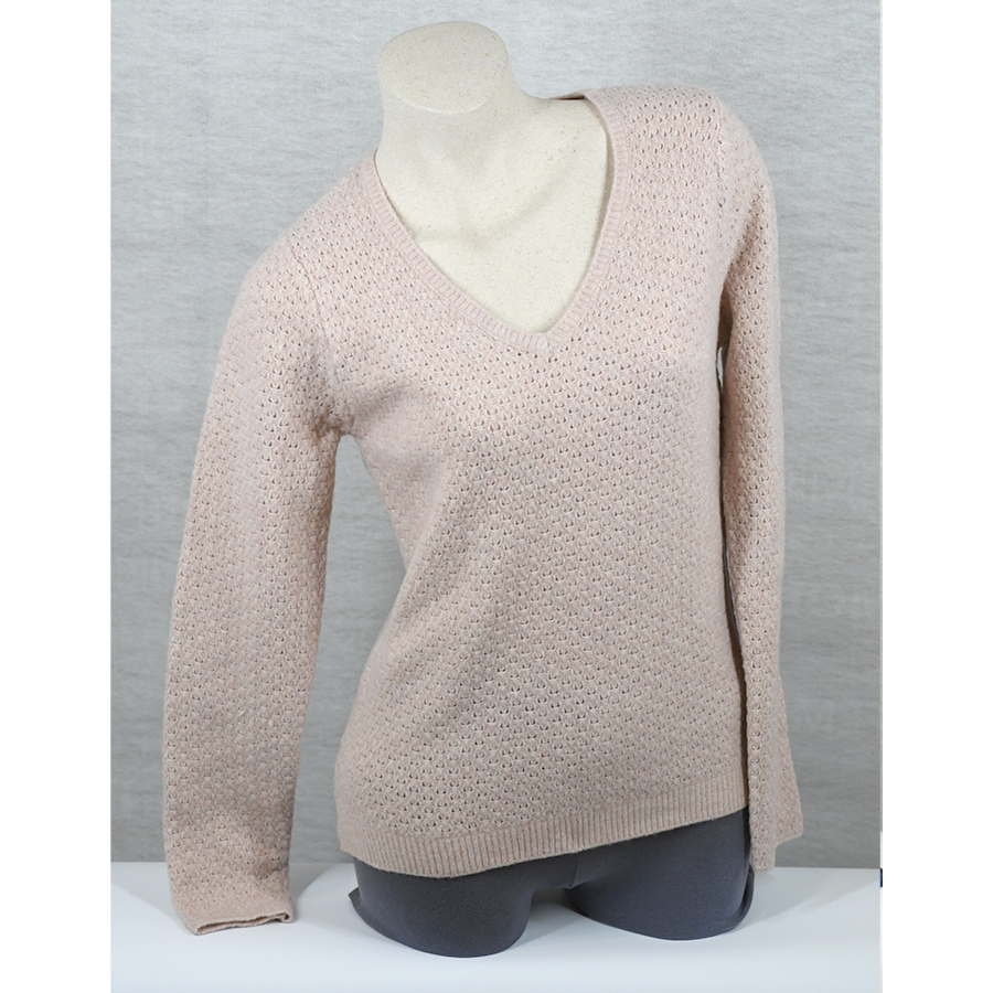 Pull rose poudré Col V ajouré, effet laine feutrée